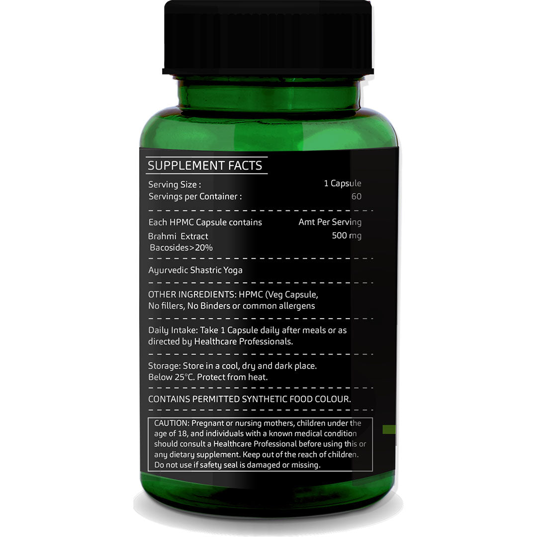 Each capsule contains standardized Brahmi extract (Bacopa monnieri)