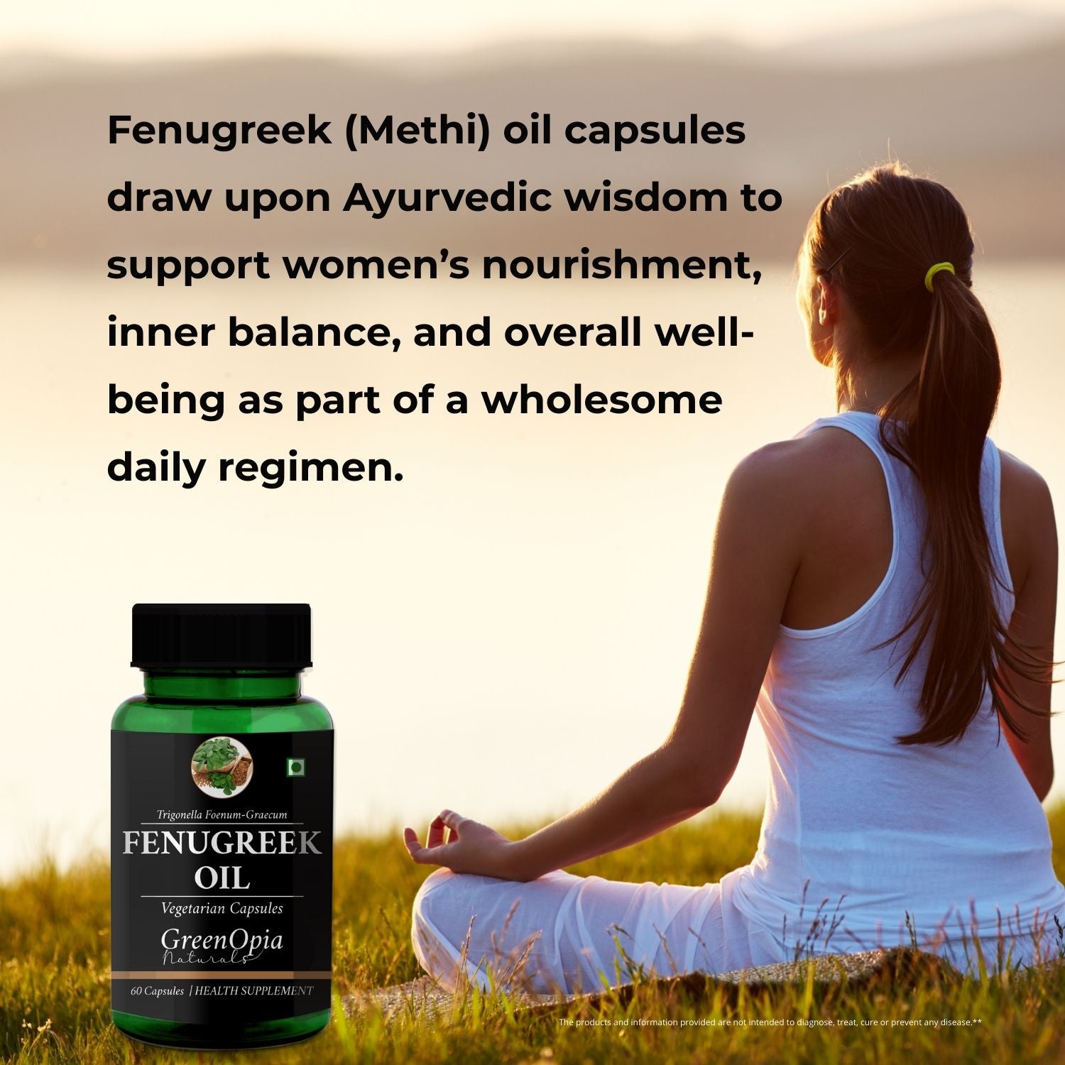 GreenOpia Fenugreek Oil Capsules – Hormonal Balance, Digestion & Weight Support | 60 Vegetarian Capsules