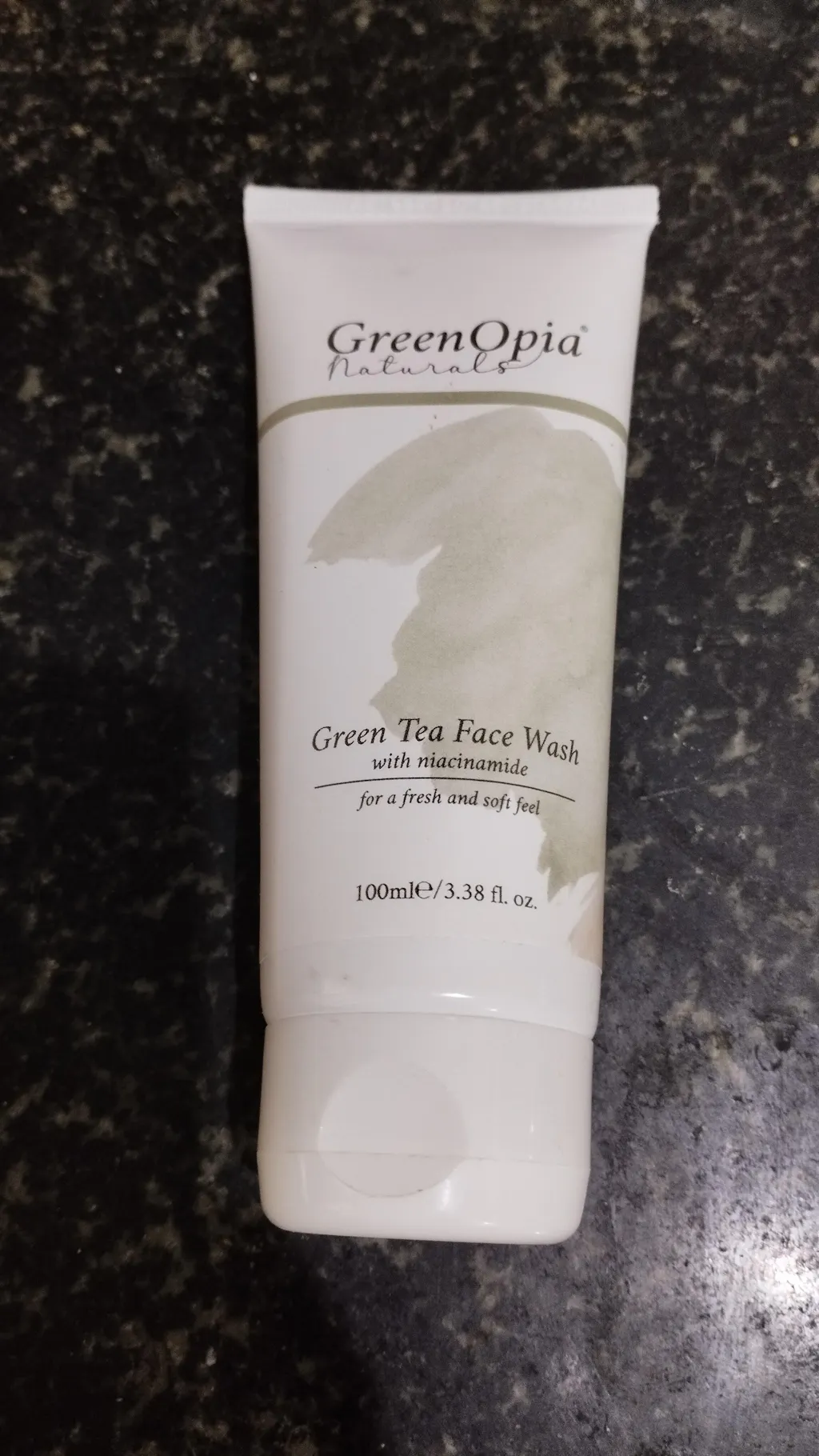 - Take a small amount of GreenOpia Green Tea Face Wash in your palm.