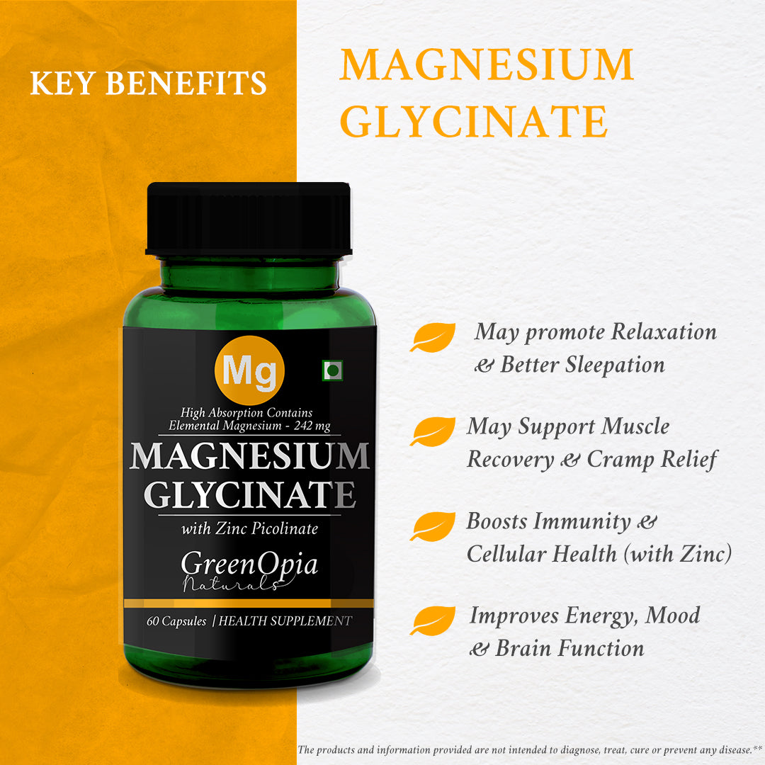 - Highly bioavailable Magnesium Glycinate, gentle on the stomach