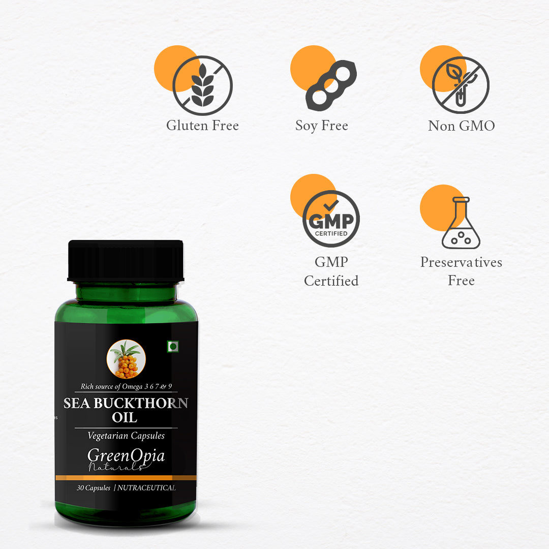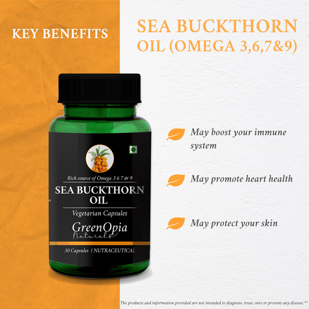 GreenOpia Sea Buckthorn Oil Capsules – Skin, Immunity & Heart Health Support | Omega 3, 6, 7, 9 | 30 Veg Capsules