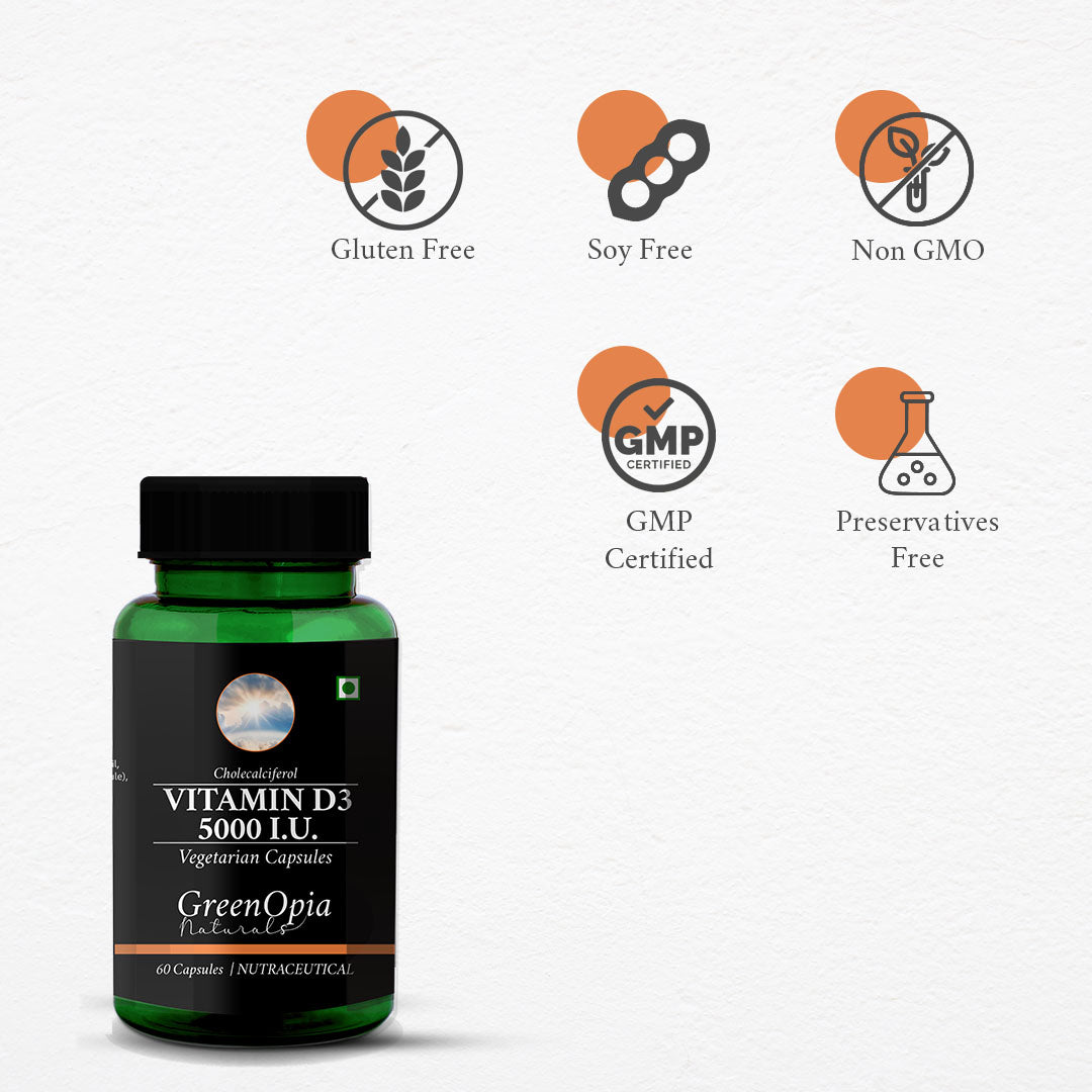 GreenOpia Vitamin D3 5000 IU – 60 Vegetarian Capsules | Bone Strength, Immunity & Mood Support | High Potency Cholecalciferol